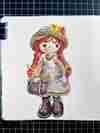 ▲透明水彩純手繪插畫示範【安妮娃娃】,尺寸:約莫15 x 8cm;
