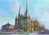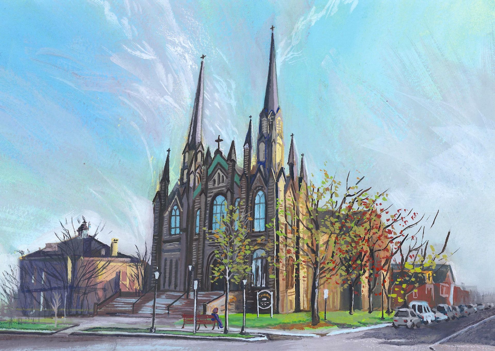 ▲《尋找安妮》純手繪插畫示範【天主教堂】,尺寸:8開,油性色鉛筆完成。