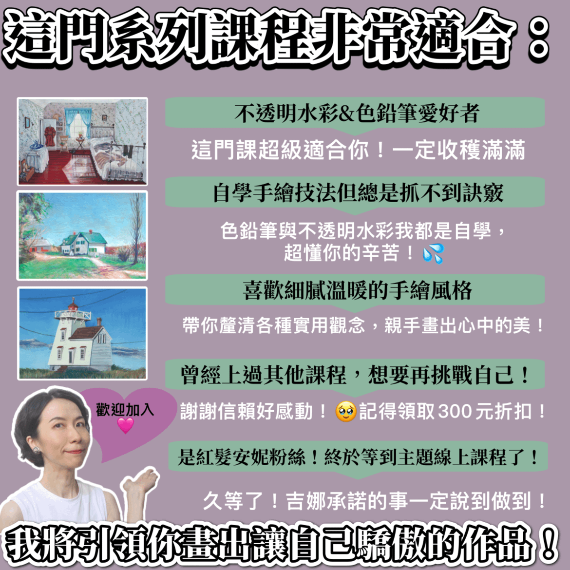 ⚠️【吉娜的手繪課】線上課程舊生,再另享300元折扣!