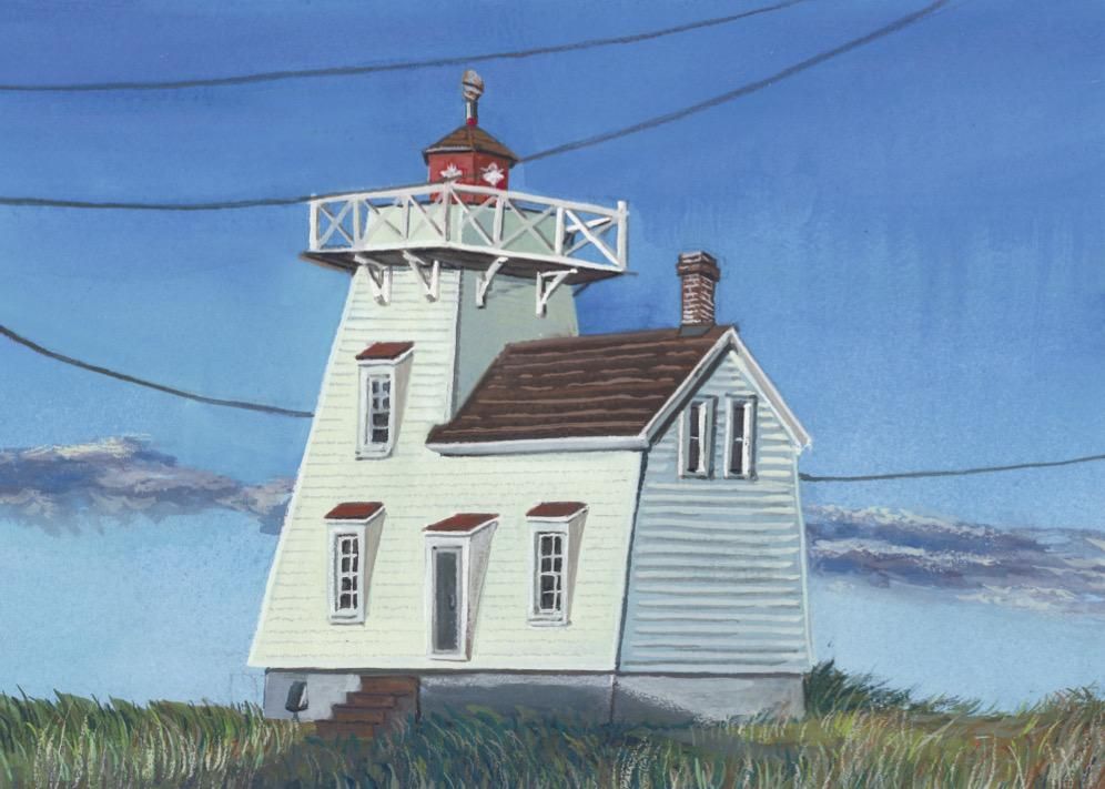 ▲《尋找安妮》純手繪插畫示範【北魯斯蒂科燈塔】,尺寸:16開,不透明水彩完成。