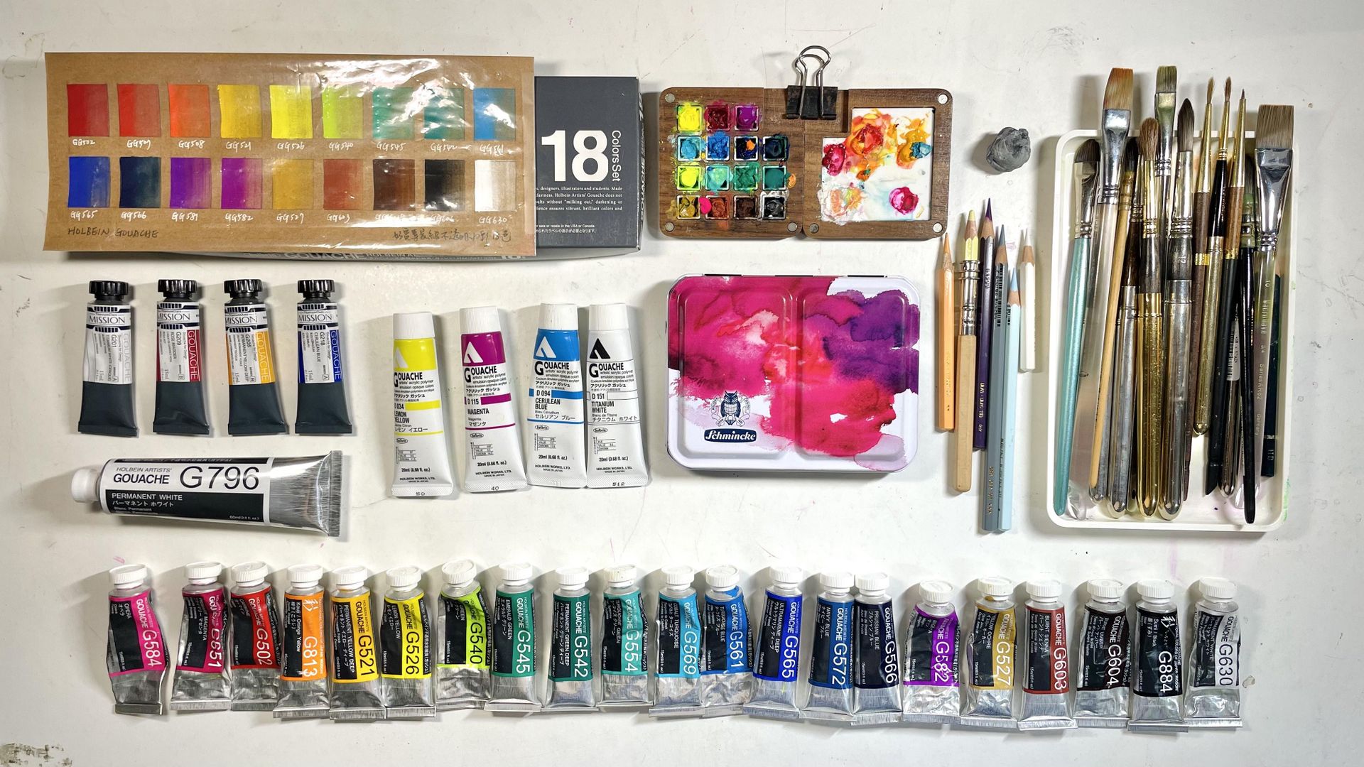 上圖|我目前所擁有的不透明水彩工具