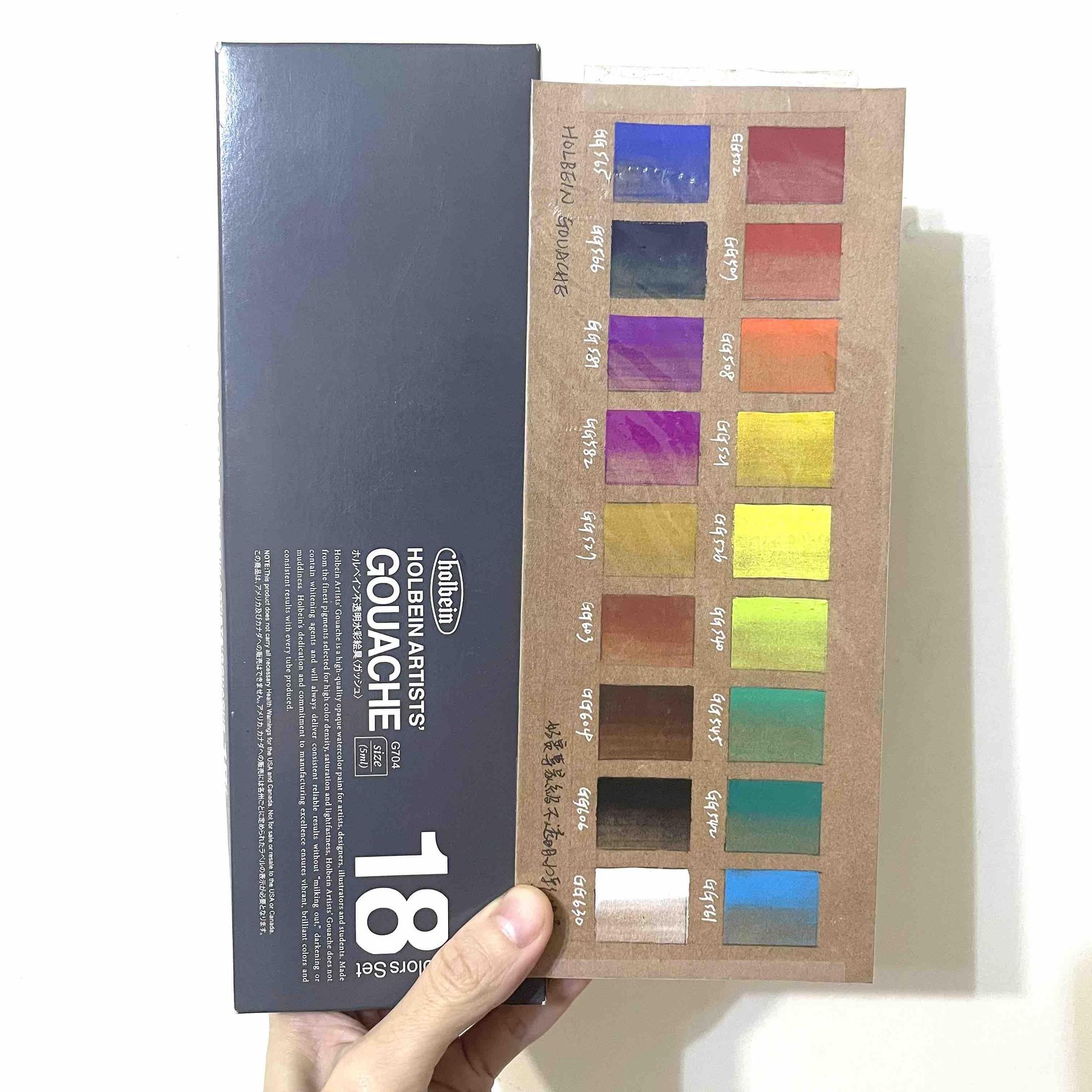 上圖|我最愛用的好賓不透明水彩,這是18盒裝以及我替它製作的色卡。